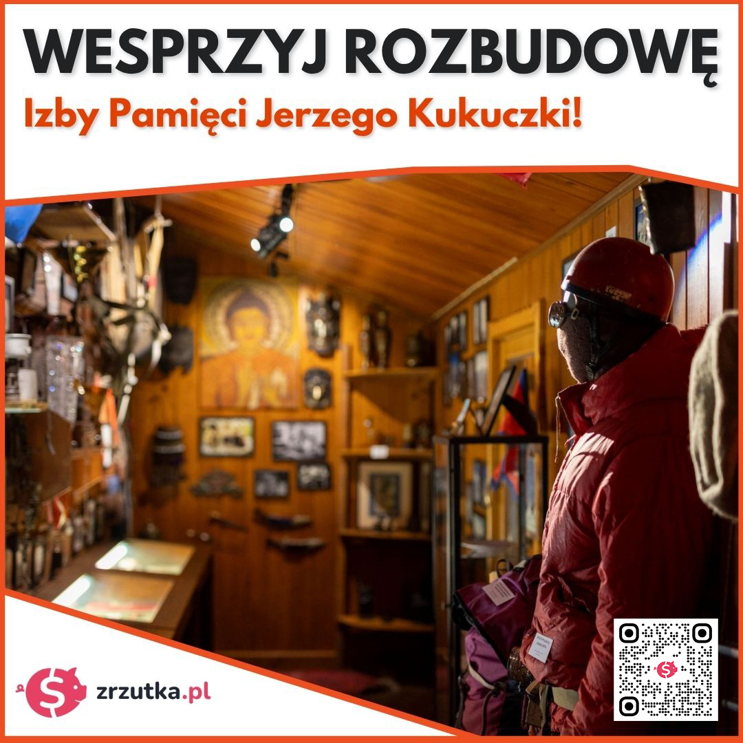 Izba Pamięci Jerzego Kukuczki jest wyjątkowym miejscem, mieszczącym się w niewielkim góralskim domku w Istebnej, w przysiółku Wilcze. Muzeum zostało utworzone przez żonę himalaisty – Cecylię Kukuczkę w 1996 roku. Dzięki zaangażowaniu i odważnej inicjatywie pani Cecylii w dawnym domu Jerzego powstało miejsce, w którym pasjonaci turystyki górskiej mają szansę poznać historię zdobywcy Korony Himalajów. Każdy znajdujący się tam eksponat, to wyjątkowy i niepowtarzalny ślad pozostawiony przez Kukuczkę. Autentyczne pamiątki poświadczają niezwykłą historię Kukuczki, a także pozwalają utrzymać pamięć o polskich sukcesach himalajskich dla przyszłych pokoleń. W tym celu w 2016 roku udało nam się pomyślnie rozbudować Izbę o poszerzenie przestrzeni, wymianę podłóg i drzwi wejściowych oraz zwiększenie ilości pamiątek. Dodatkowo na przełomie 2024 i 2025 roku całkowicie zmieniliśmy ekspozycję, wzbogacając ją o liczne fotografie, obiekty z epoki oraz film, dodający do muzeum do tej pory nieobecny aspekt audiowizualny. Dzięki temu w Izbie możecie podziwiać fragmenty filmów z wypraw Jerzego Kukuczki oraz usłyszeć jego głos. Tym razem planujemy dodatkowe poszerzenie Izby, aby pomieścić więcej gości, rozbudowę parkingu, a także dodanie usprawnień dla osób z niepełnosprawnościami. Do tego potrzebujemy Waszej pomocy!