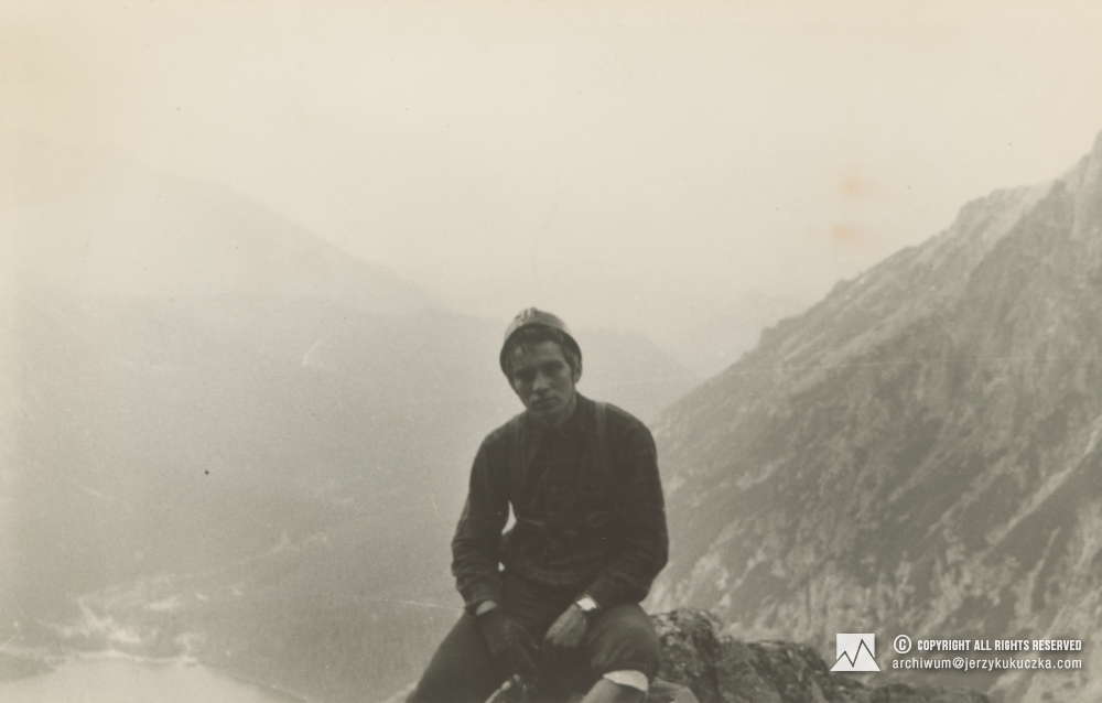 Jerzy Kukuczka w Tatrach. W tle Morskie Oko.